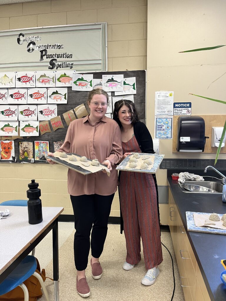 I was so lucky to be invited to work with another teacher candidate to help her create examples for her class! I have not worked with clay for years and years and years so it was a struggle – but getting to work alongside another TC was great! It builds community and collegiality!