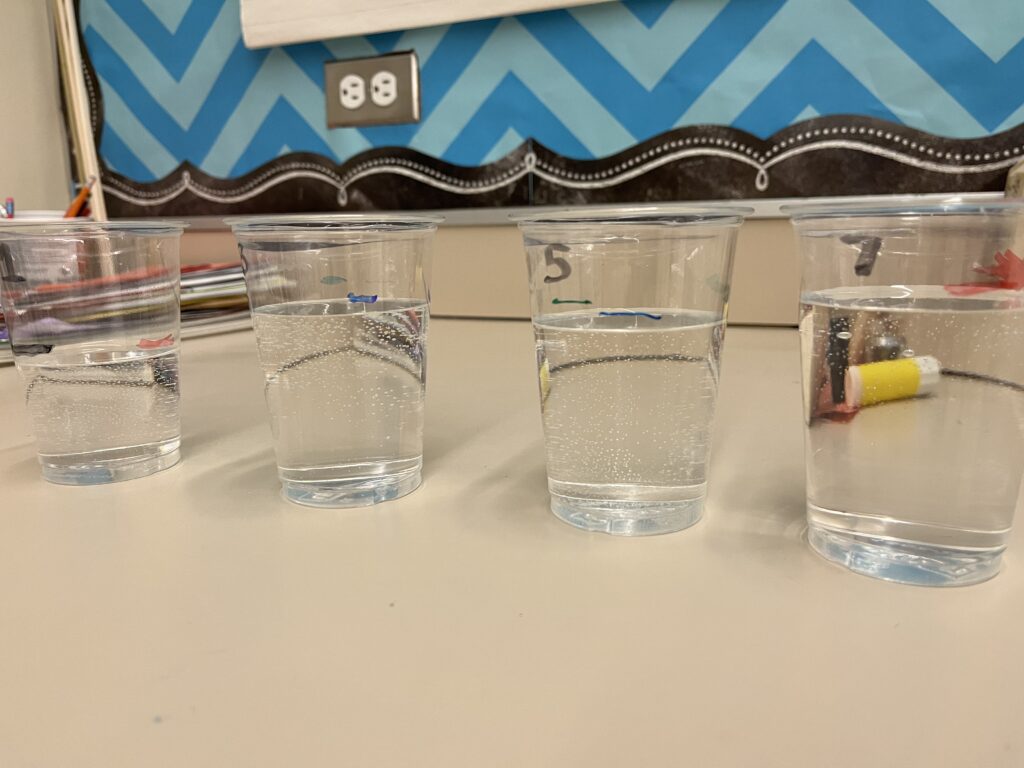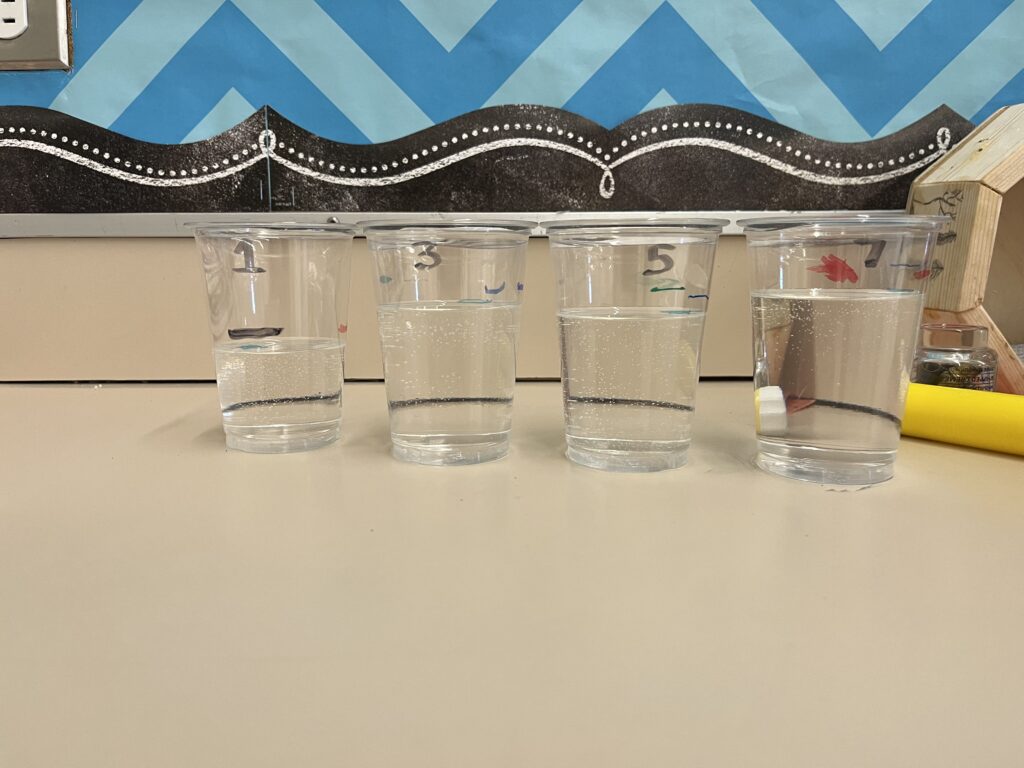 Students were split into random groups (idea fromLiljedahl) and were instructed to add a tablespoon of salt into a clear plastic cup, then add water. They stirred and then set the cups to the side of the room. Each morning, one member of each group measured the amount of water and made a mark with permanent marker on the side.
