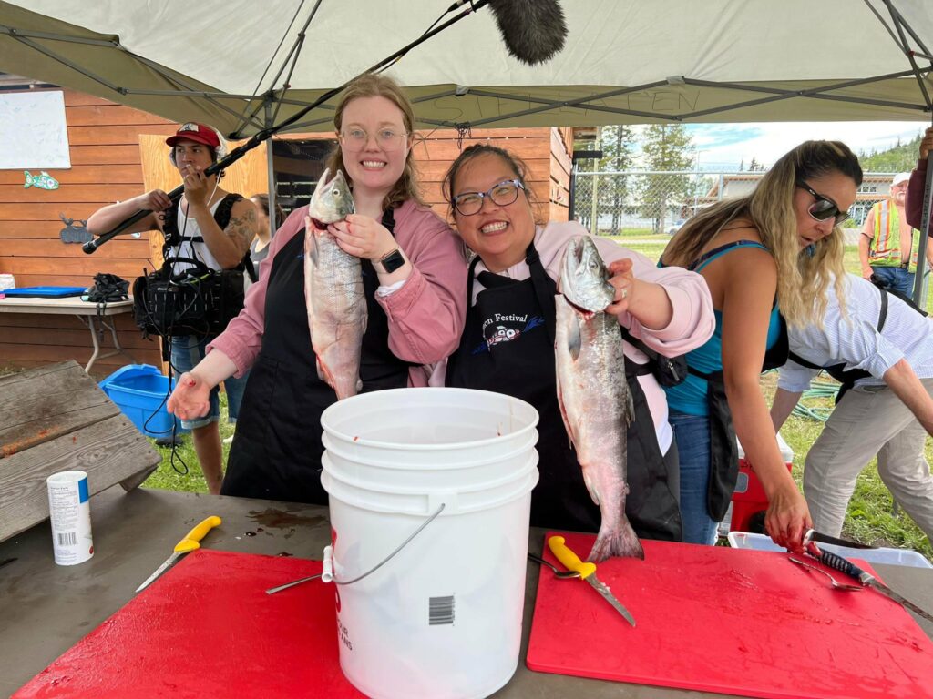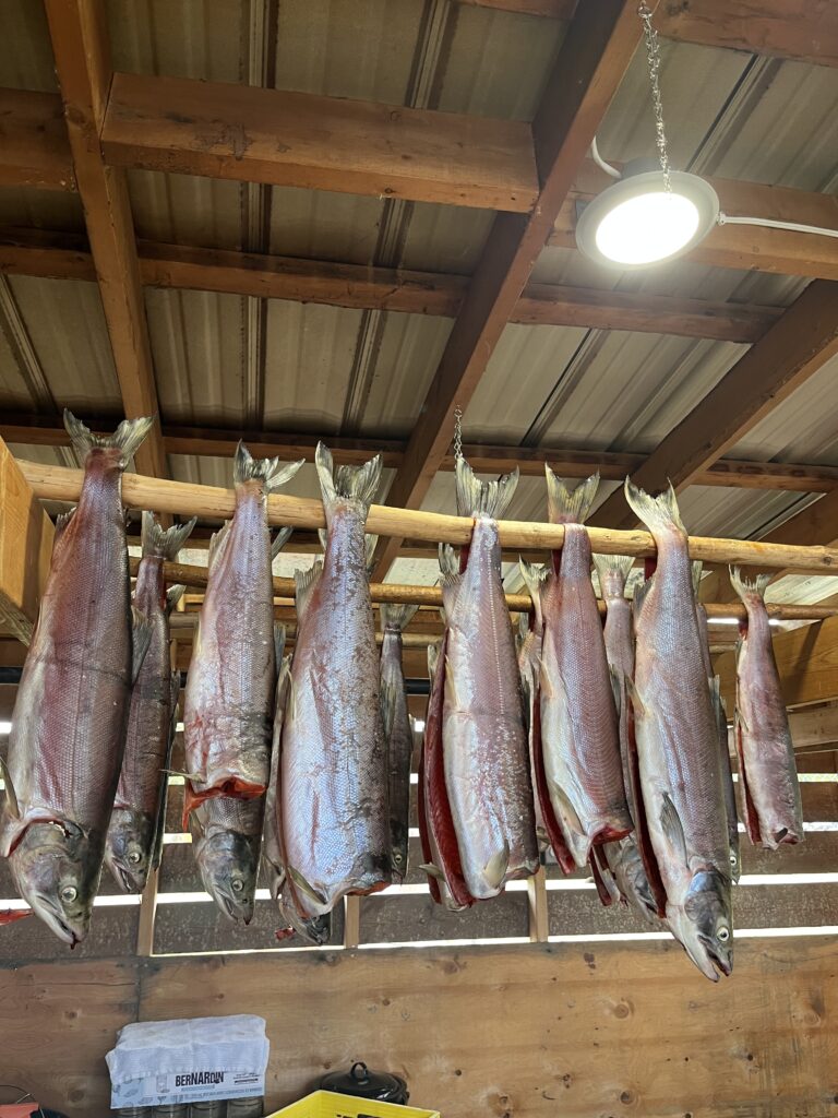 Bright and early on Tuesday morning, we drove to Stellako River – about an hour and 40 minute drive from Prince George. Over the course of 3 days, the Stellat’en First Nations has a Salmon Festival, day one (the day we attended) consisted of a beautiful opening ceremony of drumming and dancing, a nature hike, an inviting lunch, and finally the opportunity to try and prepare a salmon!