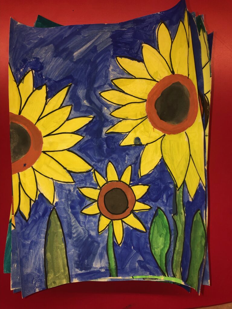 These sunflowers came together at the perfect time – right on the Thursday before Spring Break. While the intention behind this lesson was to try a directed drawing leading into painting, the students were creative in thinking of times of the year to use these paintings as gifts to loved ones.